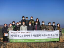 6·25 전사자 유해발굴지 산림복원 임야는 산림청 소관으로 생명의 숲에서 민간자본으로 실행한 의미가 깊은 사업으로 ‘생명의숲’ 허상만 이사장, 유한킴벌리 손승우 상무이사, 21사단 주요 인사 등이 참석하였다.
