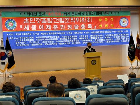 2020년 11월 13일 오후 2시에 국회도서관 대강당에서 더불어민주당 오영훈 국회의원실이 주최하고 사단법인 훈민정음기념사업회가 주관한 훈민정음탑건립조직위원회 발족식이 『세종어제훈민정음 총록』헌정식을 겸해 코로나 19의 규칙을 준수하여 50명만 참석한 가운데 거행되었다.