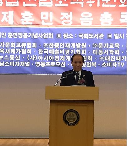 박재성 상임조직위원장은 환영사를 통해 세계에서 가장 우수한 문자인 훈민정음을 기념하는 훈민정음탑을 건립하는 우리의 사명임과 동시에 문화강국임을 세상에 선포하는 이정표가 되어 또 다른 인류문화유산으로 우뚝 설수 있도록 최선을 다하겠다고 다짐하였다. 이어서 박재성 상임조직위원장이 쓴 시 ‘훈민정음 28자’에 김현 작곡가가 곡을 붙이고 가수 청아가 노래하여 참석자들로부터 뜨거운 격려를 받았다.