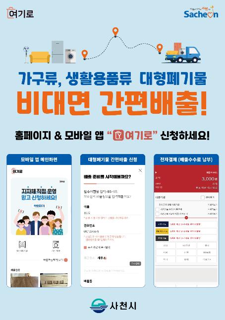 사천시는 대형폐기물을 처리하는데 있어 시민들의 불편을 해소하기 위해 대형폐기물 배출신고 모바일 앱과 인터넷 시스템을 운영한다고 밝혔다.