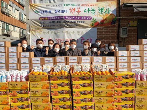 은평구 대조동주민센터, 대조동 루터교회, 동지역사회보장협의체는 2020년 11월 12일(목) 대조동 중·장년쉼터 야외광장에서 중·장년 1인 가구 및 지역주민을 대상으로 “행복나눔 행사”를 개최하였다.
