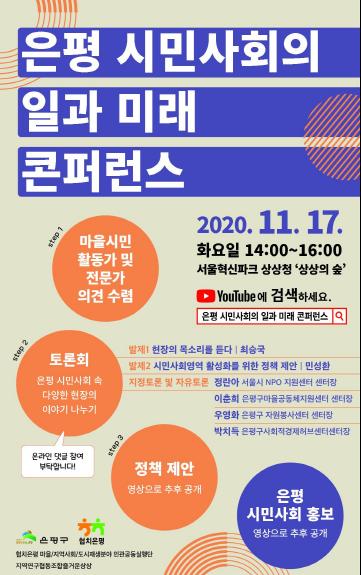 은평구와 은평구 협치회의는 11월 17일(화) 14시에 「은평 시민사회의 일과 미래 콘퍼런스」를 온라인으로 개최한다.