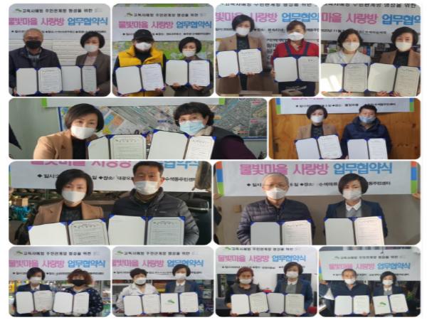 은평구 수색동은 주민관계망 형성사업 ‘물빛마을 좋은이웃’에 ‘물빛마을사랑방’으로 참여하는 관내 상점 12개소와 고독사 위험가구 발굴에 대한 업무협약을 마치고 본격적인 운영을 시작했다고 밝혔다.