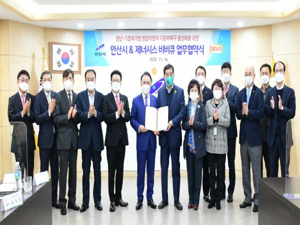안산시가 청년과 다문화가정의 창업을 지원하기 위해 국내 치킨 브랜드 1위 기업인 제너시스비비큐와 업무협약을 체결했다.
