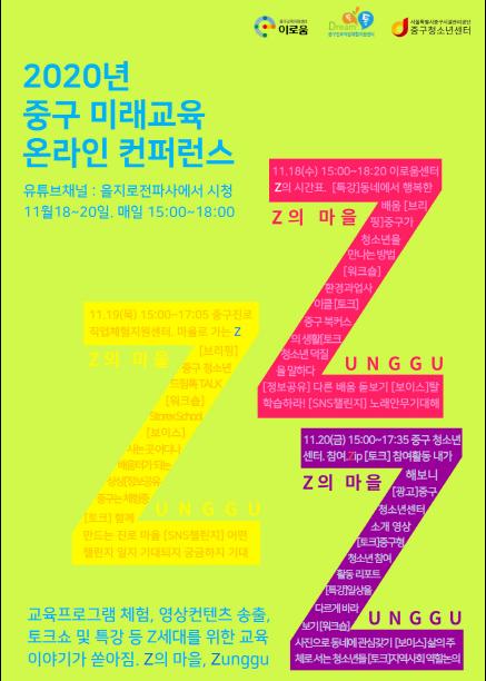 코로나19로 3일간 온라인으로 진행되는 이번 행사는 중구 공식 유튜브 채널 '을지로전파사'에서 시청할 수 있으며, 오후 3시부터 6시까지 진행된다. 누구나 시청가능하지만 특히 청소년들과 학부모들에게 유용하다.