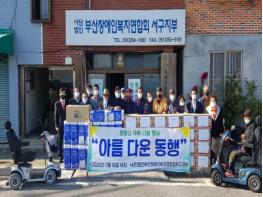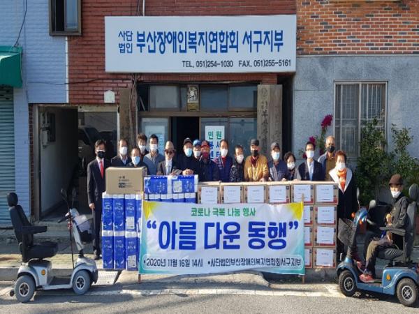 2020년‘아름다운 동행 ’나눔 행사가 지난 16일 (사)부산광역시 장애인복지연합회 서구지부 사무실 앞에서 회원 및 장애인 등이 참석한 가운데 장애인복지연합회 서구지부 주최(회장 김성봉)로 개최됐다.