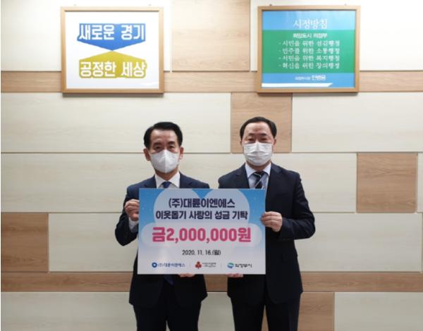 의정부시는 11월 16일 ㈜대륜이엔에스가 성금 200만 원을 기탁했다고 밝혔다.