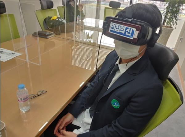 VR면접은 VR기기를 착용하면 실사로 촬영한 면접장과 2명의 가상 면접관이 등장하고, 질문과 답변을 진행함으로써 실제와 유사한 환경에서 면접 훈련을 할 수 있다.