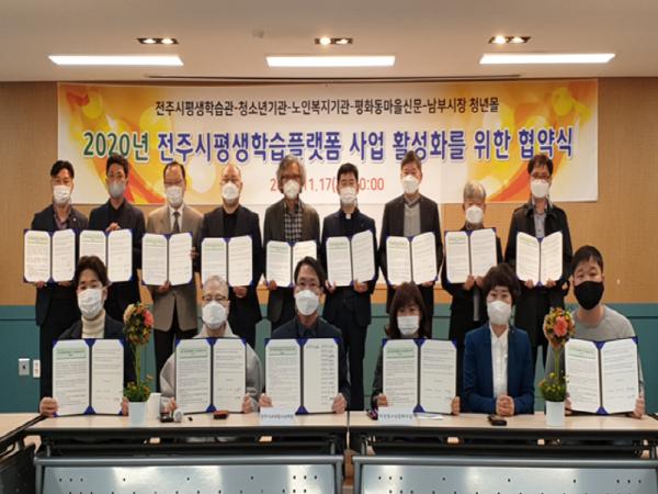 시는 17일 전주시평생학습관에서 지역 내 청소년·노인복지 기관 등 13개 기관 관계자가 참석한 가운데 평생학습 플랫폼 사업 활성화를 위한 업무협약을 체결했다.