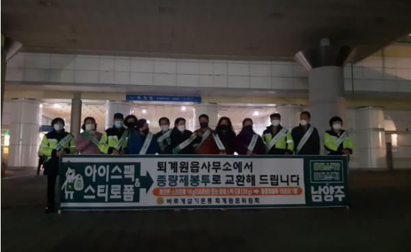 남양주시 퇴계원읍사무소는 지난 16일 퇴근시간 퇴계원역 역사 앞에서 바르게살기위원회, 새마을교통봉사대 및 직원 등 30명과 함께‘아이스팩 수거사업 홍보의 날’행사를 진행했다.