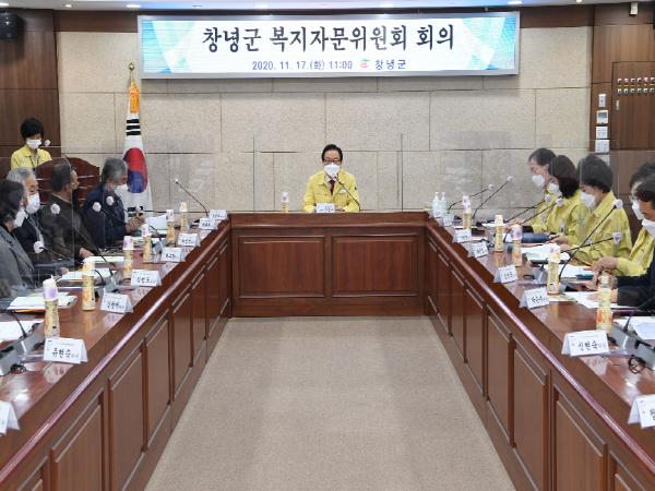 창녕군 복지자문위원회는 한정우 군수를 위원장으로 보건복지 분야 간부공무원과 민간 보건복지 전문가 20명으로 구성해 보건복지 정책에 대한 자문과 소통행정을 강화하기 위해 2019년 출범하여 운영되고 있다.