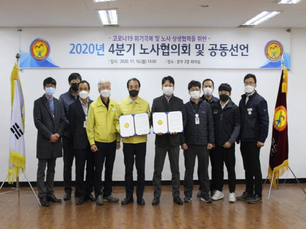 채동익 이사장은 “코로나19 장기화로 인한 시민건강 위협과 지역경제 침체, 고용불안 직면 등의 위기를 노사가 상생과 협력의 정신으로 지방공기업에 부여된 가치 수행을 위해 한마음 한뜻으로 협력해 나가겠다”라고 밝혔다.