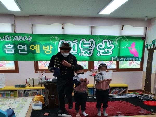 보건소는 어린이집·유치원 아동을 대상으로 눈높이에 맞춘 버블쇼, 마술쇼, 풍선쇼가 접목된 ‘매직버블쇼’를 통해 담배와 담배연기의 실체, 유해성을 이해하기 쉽게 교육하고, 흡연예방을 위한 올바른 가치관 확립을 위한 교육을 진행했다.