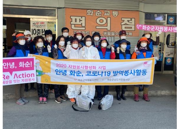 화순군은 지난 14일 자원봉사센터와 남도사랑봉사단이 코로나19 확산 방지를 위해 합동 방역 활동을 펼쳤다고 밝혔다.