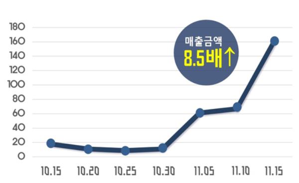 전통적으로 서점 매출 비수기에 시행된 동 사업 한 달여 동안 지역 서점 150여 곳 일일 단위 매출액은 행사 당일 10월 15일 1,870만 원에서 지난 주말인 11월 15일 1억 6,000만 원으로 8.5배 폭발적으로 증가하는 등 14.3억 원의 누적 매출이 발생했다.