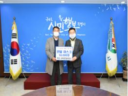 안승남 시장은 “모두 힘든 시기에 선뜻 코로나19 상황 극복을 위해 마스크 기부를 해준 ㈜비젼정보통신 문병국 대표님을 비롯한 모든 임직원들에게 감사드린다”며 “해당 물품은 기부자의 따뜻한 마음을 담아 관내 취약계층에게 잘 전달하겠다”고 전했다.