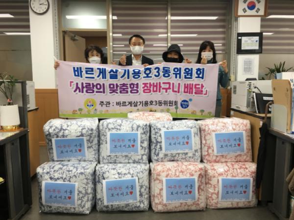 이동선 바르게살기용호3동위원회 위원장은 “하루가 다르게 추워지는 날씨에 어르신들이 몸과 마음이 따뜻한 겨울을 보내실 수 있기를 바란다.”는 소감을 밝혔다.