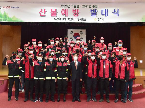 진주시는 17일 오전 10시 시청 시민홀에서 산불방지인력과 읍·면·농촌동 관계 공무원 등 100여명이 참석한 가운데 "2020년 추기~2021년 춘기 산불예방 발대식”을 개최하였다.