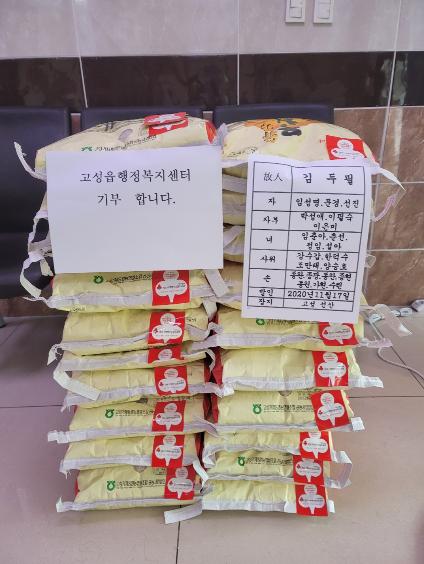 쌀을 기탁한 고 김두필의 자녀 임문경 고성농협 상임이사는 “생전 이웃사랑을 실천해 오신 어머니의 뜻을 받들어 장례식에 화환으로 받은 쌀을 어려운 이웃에게 전달하여 고인을 기리고자 한다”고 그 뜻을 밝혔다.