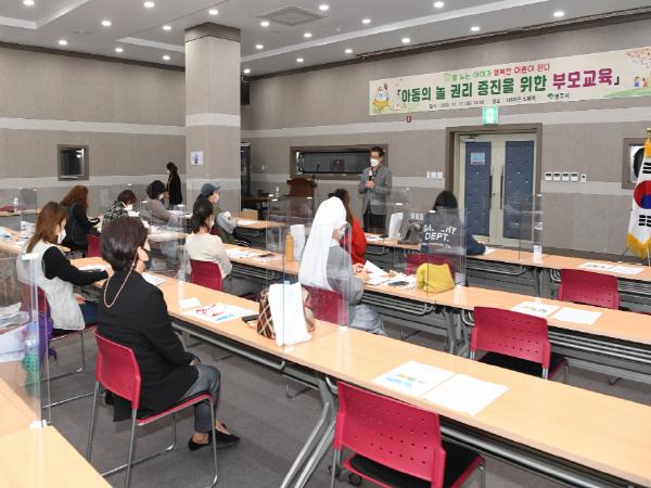 ‘코로나19’ 확산 예방을 위해 마스크 착용, 발열체크 등 방역수칙을 철저히 준수한 가운데 진행된 이날 부모교육은 세이브더칠드런코리아 동부지부 소속 노성훈 강사의 ‘잘 노는 아이가 행복한 어른이 된다’ 라는 주제로 진행돼 참석한 시민들로부터 큰 공감과 호응을 이끌어냈다.