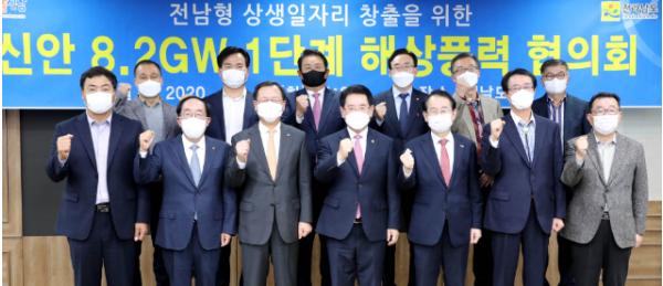 이날 전남도청 서재필실에서 가진 협의회는 김영록 전라남도지사와 김종식 목포시장, 박우량 신안군수를 비롯 한전과 각 발전사 대표 12명이 참석한 가운데, 신안지역 해상풍력 발전사업의 성공적 추진을 위한 상호 공동 협력사항 등을 논의했다.