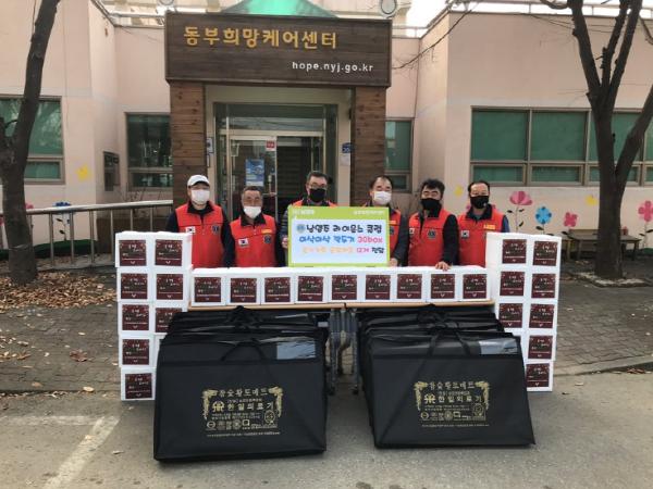 국제라이온스협회 354-H(경기북부)지구 남양주라이온스클럽(회장 황기섭)은 지난 15일 깍두기 30박스, 전기장판 12개를 동부희망케어센터에 전달했다.