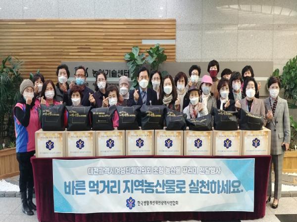 한국생활개선대전광역시연합회(회장 안미자)는 17일 오후 대전시농업기술센터에서 대전여성단체협의회에 농산물 꾸러미 300개를 전달했다.