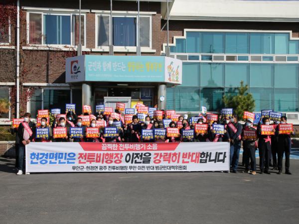 최민규 위원장은 “광주광역시와 국방부는 주민들의 의사와 상관없이 일방적으로 전투비행장을 이전하려고 하고 있다”며“군민의 생존권과 행복추구권을 침해하는 광주 전투비행장 이전 사업을 즉각 중단하라”고 말했다.