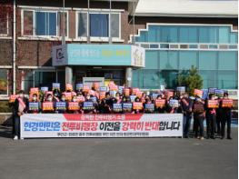 무안군 현경면 광주 군공항 이전 반대 대책위원회(위원장 최민규)는 지난 11일 현경면사무소 앞에서 현경면 사회단체와 주민 등 70여명이 참석한 가운데 광주 군공항 무안 이전 반대 결의대회를 가졌다.