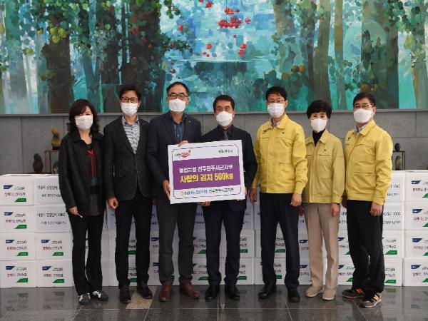 농협 전주완주시군지부가 완주군에 김장김치 500kg(250만원 상당)을 기탁했다.