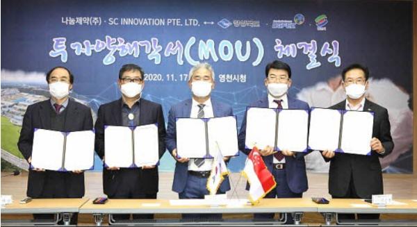 이번 투자양해각서 체결을 통해 나눔제약은 싱가포르 SC INNOVATION 사로부터 112만 달러를 유치해 영천첨단부품소재산업지구 1만1147㎡에 150억 원 규모의 의약품 한약재 등 약품추출을 위한 시설 건립에 투자 한다.
