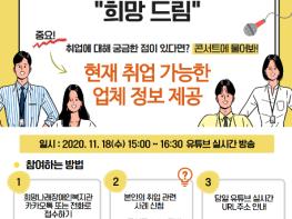 이번 온라인 장애인 취업콘서트‘희망드림’은 정보소외 구직장애인에게 고용, 교육, 훈련 등의 취업관련 정보를 제공하고, 장애인을 대상으로 한 취업 토크쇼를 진행해 구직장애인들의 역량을 강화하고자 준비됐다.