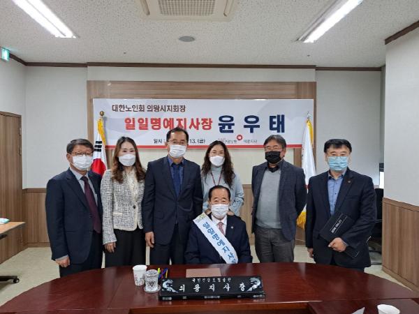 대한노인회 의왕시지회 윤우태 회장이 지난 13일 국민건강보험공단 의왕지사 일일명예지사장으로 위촉되어, 공단 현안 및 정책방향에 대한 공감대를 형성하고 우호적인 관계 유지를 돈독히 했다.