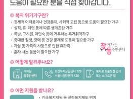 아울러 지역 내 민관기관과의 협력을 통해서도 위기가구를 발굴한다. 구는 관내 사회복지기관을 비롯, 어르신·장애인 등 복지취약계층 주요 이용기관에 협조를 요청하고 관련 복지서비스를 적극 안내할 예정이다.