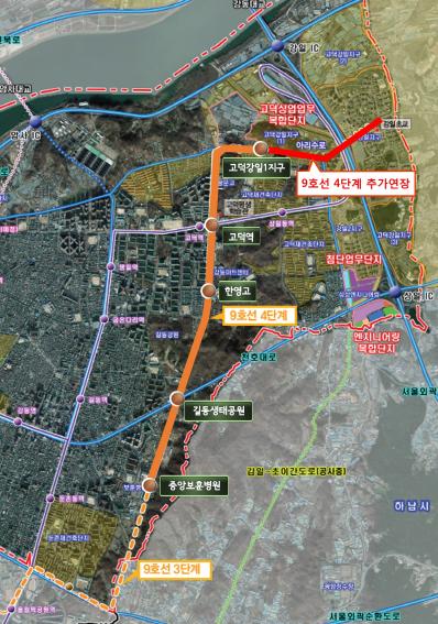 고덕강일1지구~강일동을 연결하는 9호선 4단계 추가연장 구간은 현재 턴키 공사 발주를 앞둔 9호선 4단계 연장사업(중앙보훈병원역~고덕강일1지구, 4.12km)과 2016년 제3차 국가철도망 기본계획에서 확정된 9호선 연장안(강일~미사, 1.4km)의 단절 구간이다.