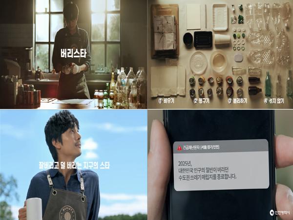 광고는 커피전문가(바리스타)와 유사한 복장을 한 주인공이 커피를 내리는 듯한 모습으로 시작하지만, 실제로는 캔, 플라스틱, 박스 등을 올바르게 분리 배출하는 반전의 모습을 보여준다. 이어 얼마 남지 않은‘2025년 수도권매립지의 종료’를 알리는 메시지가 표출된다.