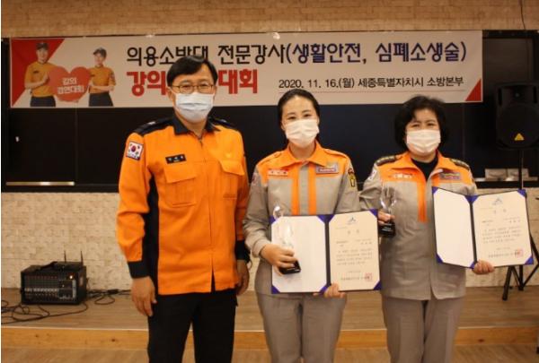 최우수 수상자로 꼽힌 생활안전 분야 류명순 대장과 심폐소생술 분야 박덕례 대원은 오는 26일 소방청에서 실시되는 전국 의용소방대 강의 경연대회에 세종시 대표로 출전하게 된다.
