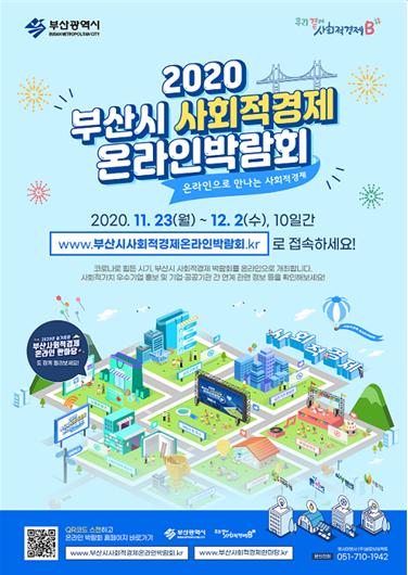 부산시는 오는 23일부터 내달 2일까지 「2020 부산시 사회적경제 박람회」와「2020년 부산 사회적경제 한마당」을 온라인 플랫폼인 ‘부산시사회적경제온라인박람회.kr’과 ‘부산사회적경제한마당.kr’에서 개최한다고 밝혔다.