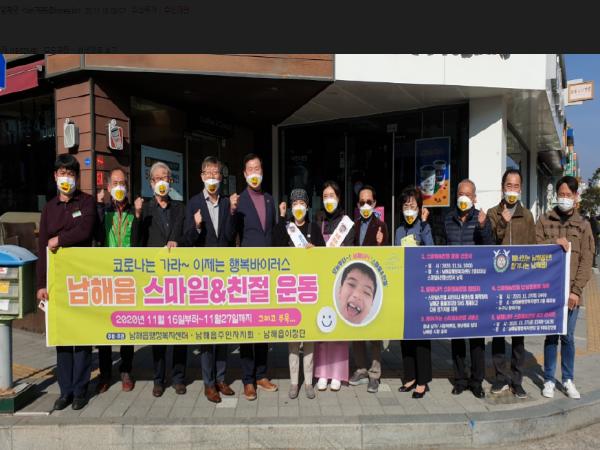 남해읍 행정복지센터는 지난 16일 남해읍주민자치회와 남해읍 이장단과 공동으로 2층 회의실에서 ‘스마일&친절운동 선포식’을 열었다.