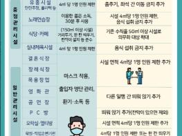 유흥주점, 단란주점, 콜라텍, 노래연습장, 식당·카페 등 중점관리시설 5개 업종(9448개소)과 PC방, 결혼식장, 장례식장, 학원·교습소 등 일반관리시설 13개 업종(9779개소)에는 영업장 입구에 ‘시설 면적당 수용 가능 인원(4㎡당 1명)을 반드시 표시하도록 안내했다.