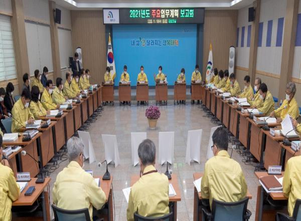 대전 대덕구는 18일 구청에서 간부공무원을 비롯한 직원 50여 명이 참석한 가운데 ‘2021년도 주요업무계획 보고회’를 열었다.