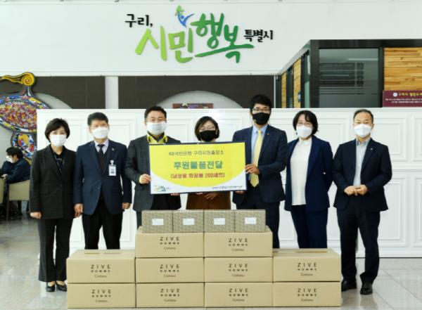 구리시는 11월 17일 KB국민은행 구리시청출장소으로부터 후원받은 화장품 200세트를 경제적인 어려움이 있는 국가유공자분들을 위해 구리시종합사회복지관에 전달했다고 밝혔다.