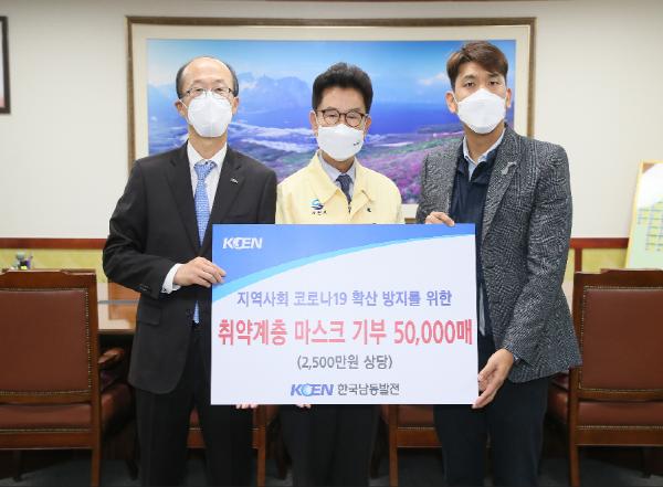 한국남동발전 삼천포발전본부(본부장 임다두)는 17일, 사천시청을 찾아 관내 저소득층을 위한 마스크 50,000장(2,500만 원 상당)을 기탁했다.