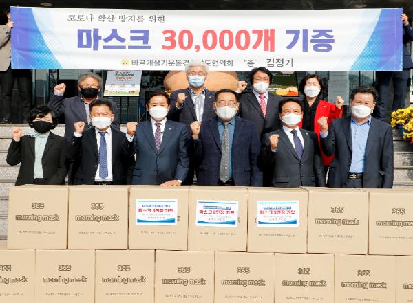 김정기 의령군 향우(바르게살기운동 경상남도 부회장)는 17일 고향을 생각하는 마음을 담아 의령군(권한대행 백삼종)에 코로나19 극복을 위한 마스크 30,000매를 기탁했다.
