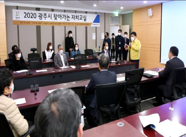 광주시는 지난 17일 시청 상황실에서 ‘찾아가는 자치교실’ 교육 및 ‘2020년 주민자치협의회 월례회의’를 개최했다.