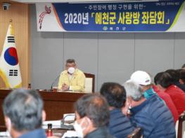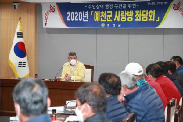김학동 예천군수는 16일 오후 6시 군청 중회의실에서 유해야생동물로 인한 농작물 피해를 최소화하기 위해 운영중인 ‘2020년 유해야생동물피해방지단’ 25명과 사랑방 좌담회를 가졌다.