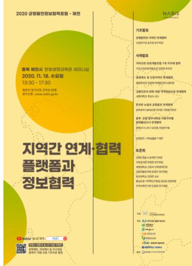 대통령 직속 국가균형발전위원회에서 주최하고 한국산업기술평가관리원과 충청북도, 제천시, 세명대학교(산학협력단)등이 공동 주관하는 ‘2020년 균형발전 정보협력 제4차 포럼’이 오는 18일 한방생명과학관 다목적강당에서 개최된다.