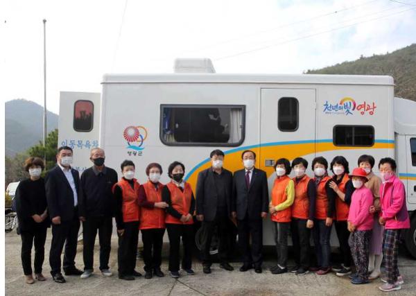 이동목욕은 거동이 불편한 소외계층의 청결한 생활을 위해 이동목욕차량이 대상자의 거주지까지 찾아가 자원봉사자들이 차량에서 목욕을 실시하는 원스톱 지원서비스로 올해 21년째를 맞이하며 영광군여성자원봉사대에서 매주 2회 운영 중에 있다.