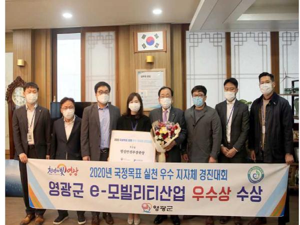 이날 영광군은 e-모빌리티 기반구축, 산업 육성, 산업 확산, 산업 융합까지 4단계의 플랜으로 2025년까지 100여 개의 관련기업을 유치하여 2,000개의 일자리창출을 통하여 영광의 미래를 이끌어 가겠다는 내용을 담은 “e-모빌리티 산업 생태계 구축” 사례를 제출?발표했다.