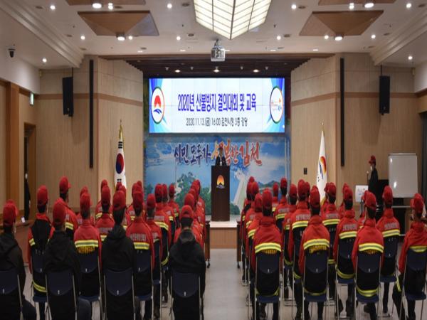 김천시는 11월 13일 산불전문예방진화대 및 공무원 등 50여명이 참석한 가운데 산불방지 활동에 총력을 다할 것을 다짐하는 ‘2020년 가을철 산불방지 결의대회 및 교육’을 김천시청 강당에서 개최하고 본격적인 산불방지 비상체제로 돌입했다.